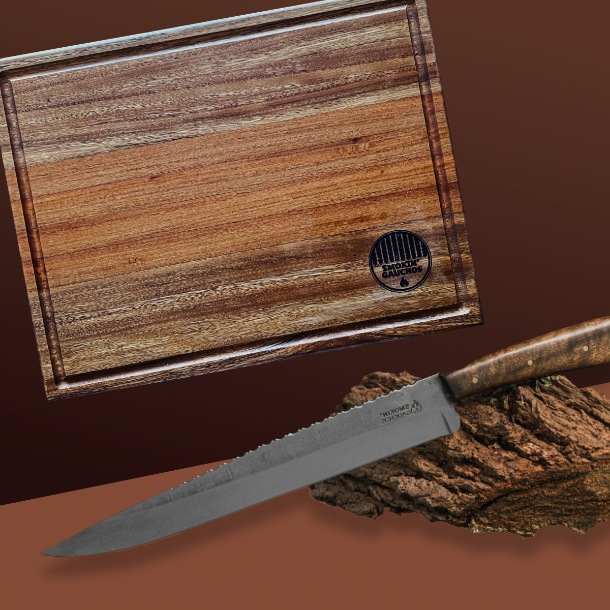 A purposeful pairing for barbecue and kitchen prep. This combo brings together our 12 in Handmade Chef Knife and a Solid Handmade Cutting Board crafted from Australian hardwoods. Built to slice brisket cleanly, portion proteins and present well at the table.