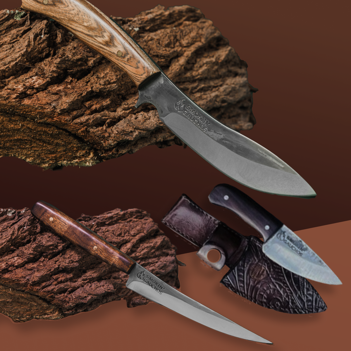 A compact three piece kit for clean field prep, precise trims and everyday camp or boat work. The Field Dressing Set pairs two stainless profiles for corrosion resistance with a nimble high carbon detail blade. All three arrive in fitted leather sheaths.