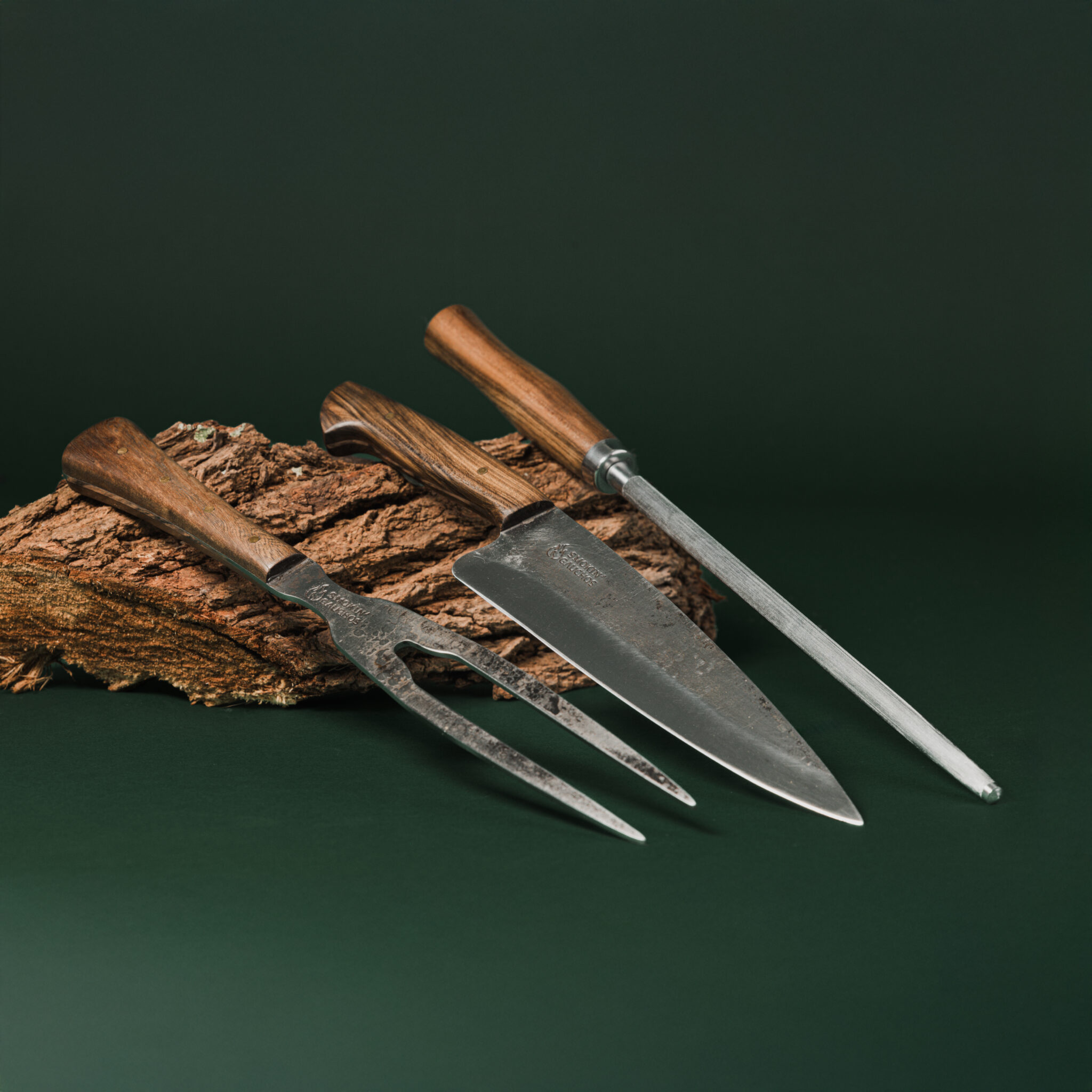 These aren’t mass-produced or disposable tools. Each Smokin’ Gauchos carving set is made to last a lifetime. The high-carbon steel holds its edge far longer than stainless steel and develops a natural patina that enhances both protection and beauty with age.