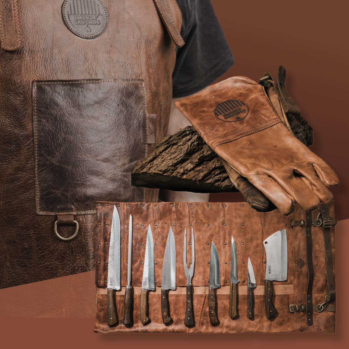 A comprehensive kit for serious prep at home, in the restaurant, or by the Parrilla. The Ultimate Chef Combo brings together our 10-Piece Handmade Knife Set, Brown Handmade Leather Apron, and Brown Handmade Leather Fire Gloves. Built for long service, comfortable protection, and a complete range of cutting and cooking tasks.